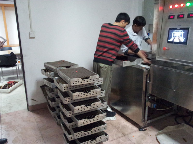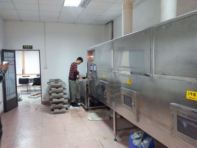[實驗記錄]利用微波隧道式殺菌設(shè)備進行連續(xù)式的進料殺菌,溫度達到85度,三分鐘的殺菌時間,對口服液進行殺菌處理。